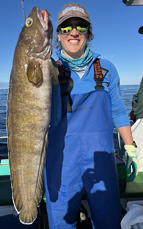 Female Angler of the Year (FAY-'24): This is the fourth year in a row that Darlene Chin (VT) has won this award. She is one of our most consistent anglers overall. Plus, she is simply the best female angler who we have fishing with us on a regular basis. The highlights of her season last year included success on every trip. She was high hook or close to high hook many times, in the top ten percent every time. She did her first twenty-two hour trip with me and did very well. She probably would have landed her first trophy haddock with me that day if I hadn't told her to have it lifted into the boat. Of course, it fell off the hook in the process and back to bottom it went. It looked to be between 6.5 and 7.5 pounds. She did catch a 10 pound pollock and a 10 pound cod on that trip. I think the best trip she had was with Captain Ian on October 6, 2024, an extreme day trip, her favorite trip. She was high hook that day with the most legal fish, among a few of our celebrity fishermen. She didn't win the boat pool but she caught the best double, a 14 pound pollock and a 13 pound pollock, both fish caught the same line at the same time. And she caught the second, third and fourth largest fish of the trip. A 16 pound pollock, a 15 pound pollock and the 14 pound pollock that she caught with the double. She also had trips where she didn't catch a single dogfish, which is very unusual for her with the way she fishes. It's always pleasure to see Darlene come down the ramp to go fishing with us. As is typical of all good fishermen, she loves the experience and, like Dave Burton, she is ultimately consistent. Thank you, Darlene, and congratulations, an honor that is well deserved.