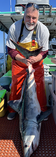 As I feel that the greatest achievement in angling is the ability of a person to hook and land a trophy fish on their own, I have listed the guests who caught the top five largest of each significant species during the 2024 fishing season. Keep in mind that all the represented weights of these fish were taken aboard the Bunny Clark using a registered scale shortly after capture (the same way it has been done since our first fishing trip on the Bunny Clark forty-two years ago in May 1983). I feel that this is the fairest comparison between the angler’s fish since weight loss is proportional to the amount of time the fish is out of water and every species loses more or less weight differently, more or less, depending on their specific morphology. The weight loss differential varies between species. Getting a weight on a fish just after it comes over the rail makes the weight of every fish caught on the Bunny Clark directly comparable through all of the past fishing seasons.
