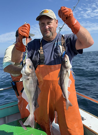 Other Angler Highlights: Paul Killmyer (ME) landed a 10 pound pollock and a 13.5 pound pollock. Kevin Viel (NH) might have caught a pollock over 10 pounds but the only one I weighed came out at 9.5 pounds. Buzz Leonard (ME) caught his first ever Maine state trophy cusk today. It weighed 12.5 pounds. It looked and felt bigger than that when I gaffed it. Some of Buzz's other fish included a double with an 11.25 pound pollock and an 11.25 cod, a 12.5 pound pollock and a 15 pound pollock. Kevin White (ME) landed a 10 pound pollock and two other pollock I didn't weigh that looked to be the same or a bit bigger. Chris Sullivan (VT) landed a double that included an 11.5 pound pollock and a 14 pound pollock. Darlene Chin (NH/FL) landed a double that included a 13 pound pollock and an 11.75 pound pollock. A good time was had by at least two thirds of the anglers aboard!