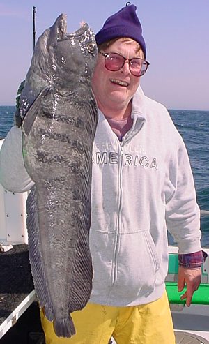 Our groundfish tagging program has slowed down over the last two seasons mainly because of an increase in workload. However, the program isn't dead. The largest cod of the season that was tagged and released was a 41 pound Maine state trophy caught by Karl Day (ME) on June 1, 2004. On May 27, 2004, Ken Ung (MA) also had the opportunity to tag and release the largest cod he had ever landed, a 40 pound Maine state trophy. However, while busy in the cockpit, I misunderstood Ken's demands and called to (then deck hand) Ian Keniston for a gaff who promptly did as he was told. Ken, an excellent angler and very conservation minded, was disappointed, as I know I would have been in the same situation. The second largest fish of the season that was tagged and released was a 39 pound Maine state trophy cod caught by Owen Thurston (ME) on June 24, 2004. The third largest tagged and released fish was a 36 pound Maine state trophy cod caught by Eric Pysar (NY) on July 20, 2004. Some other big trophy cod that were tagged and released included a 32.5 pounder and a 28 pounder by Eric Grove (ME), a 27.5 pounder by Dick Lyle (NY), a 27 pounder by Steve Selmer (NH), a 31 pounder by Rowland Mortensen (NJ), a 26 pounder by Ken McLaughlin (ME), a 32.5 pounder by Steve Shugars (ME) and a 27 pounder by Dave Gray (VT).