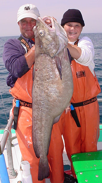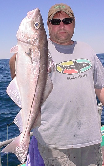 [The picture on the right is a shot of Jim Lennon (NY) holding his 24.5 pound pollock caught during a September offshore marathon trip in 2008.]