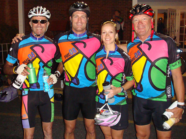 From left to right: Yours Truly, Bryant Mitchell, my niece, Abby Mitchell and, my inspiration and best friend, Paul Haseltine. The shot was taken by Steve LaPlante (who has driven from home twice to see us off at the start of this great event) at 5:00 AM, August 2, 2008.