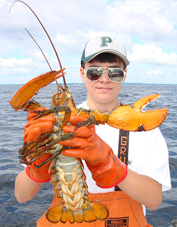 [The shot on the lower right shows fifteen-year-old Micah Tower (ME), my son, holding a 7 pound female lobster. This digital image wasn't taken on the Bunny Clark but while lobstering on the Petrel, my lobster boat. Micah and I lobster together all summer between the Bunny Clark and Barnacle Billy's restaurants. ]