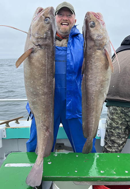 Largest Double: (The most combined weight of two fish caught on the same line at the same time.) The largest double of the year was caught by Shawn Rosenberger. His double included 30.5 pound Maine state trophy white hake and a 21.5 pound white hake. Shawn also had the largest double of the season in 2023, 2022 and in 2021. Joe Ford (PA) came in second place with a double that included a 24.5 pound white hake and a 21.5 pound white hake. Jonathan Griffin came in third with a double that included a 22.5 pound white hake and a 19 pound white hake. Dave Symes (ME) came in fourth with a 26 pound Maine state trophy white hake and a 15.25 pound white hake. Mike Schetter was fifth with a 15 pound pollock and a 23 pound pollock.