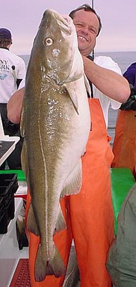 Mike Rygiel (MA) with the second largest 2004 Bunny Clark caught cod, a 59 pound Maine state trophy. Mike has a penchant for catching big fish with me. Last year he landed a 31 pound Maine state trophy cusk, a tie for the third largest cusk that has ever been caught on the Bunny Clark.
