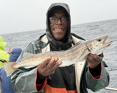 Other Angler Highlights: Jim Walker (NJ) caught the first fish to start off the boat pool, a 7.5 pound pollock. I also weighed a 10 pound pollock and an 11 pound pollock for him. Patty Bergeron (VT) landed a 9.75 pound pollock and a 12.25 pound pollock, her two biggest fish. Guy Hesketh (CT) caught a 10 pound pollock, his biggest fish. Leo Lamoureux (VT) caught a 10 pound pollock and a 10.75 pound pollock. Muhtsyr Yee (ME) caught a 10 pound pollock, his best fish. Eligah Hamilton (SC) boated an 11 pound pollock, his biggest fish of the trip. Randy Bergeron (VT) caught the largest cod at 9 pounds.