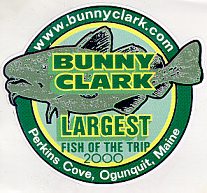 Most Aces: For those who don't know, an angler scores an ace when he or she lands the three largest fish (or more) during a trip. The top three fish is an ace. The top four is a double ace. The top five is a triple ace and so on. Gil Ranta was the man of aces this season. It is unusual to have more than one ace in a season. This year we had six! Gil got two himself, an ace and a "silver ace". A silver ace is attained when a person lands the seven largest fish on a trip (The only other person I know of who did that in Bunny Clark history was Al Robinson. I believe he did it in 1989.). It was an unprecedented move and destroyed the hopes of some who were trying to gain points (a "silver" is worth 40 points) toward FY-'00. Mike Horwitz didn't let that bother him, although he did mention it a few times, and went out and captured an ace himself. Other ace takers included Ken McLaughlin (who had a great year last year), Andy Shore , one of PA's finest, and Bob Welch (NH), on his maiden voyage aboard the "Bunny".