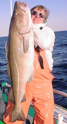 The fishing last season was better than normal for big fish but we caught fewer fish overall. Part of the reason for more limited landings was a species shift. Specifically, we saw less pollock recruitment to the fishing grounds. Pollock usually make up the largest percentage of landings in the fall. This year that wasn't the case. Also, we avoided areas where we had our best fishing for smaller cod in the past. This shift was prompted by a change in Federal regulation on cod and haddock that went into effect on May 1, 2002. Most significantly, the minimum size for keeping a cod went from 21 inches to 23 inches. At the same time, a bag limit of ten cod/haddock was also imposed. This was an aggregate limit (i.e.: if there were 30 anglers aboard you could legally land 300 cod/haddock) so it didn't limit us after June but it did limit us on two trips earlier in the season. On August 1, 2002, the legal size limit on haddock went from 21 inches to 23 inches. This rule cut down on haddock landings. All in all, it probably helped the fish stocks in the smaller sizes but it forced us to work on the bigger fish, a trend that is being recapitulated by fishery management regulations in all the different fisheries for groundfish in New England. This was good for us because we learned more about hunting for the big fish. However, I'm not so sure it helps the stocks in the big picture.