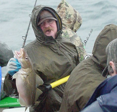 Most Trophies: Bob Nixon (NH) landed the most trophies last season with a total count of 53 fish! Some of his better fish included a 31 pound cod, a 36 pound cod, a 7.2 pound haddock, a 15.5 pound cusk and twelve white hake from 28.5 pounds to 37 pounds! Incidentally, on December 20, 2002, aboard my lobster boat (the Petrel), he landed a few more trophies including the largest cod of his life weighing 44 pounds! Fred Kunz and Captain Kenton Geer tied for the second most trophies with a count of 51 fish each. Fred's largest fish included ten cod from 28.25 pounds to 40.5 pounds and nineteen white hake larger than his career best hake of 21.5 pounds! He also landed two trophy haddock and a 29 pound pollock. Incidentally, Fred also landed a few trophies on the Dec. 20, 2002 Petrel trip including his largest cusk of the season at 14 pounds. Tim Williams (CT) came in third with 50 trophy fish including five cod from 30 to 37 pounds, twenty white hake from 25 to 40.5 pounds, a 31 pound cusk and a 33.5 pound pollock. Tim was also on the above-mentioned Petrel trip with a catch of a few cod trophies including a 30 pound cod.